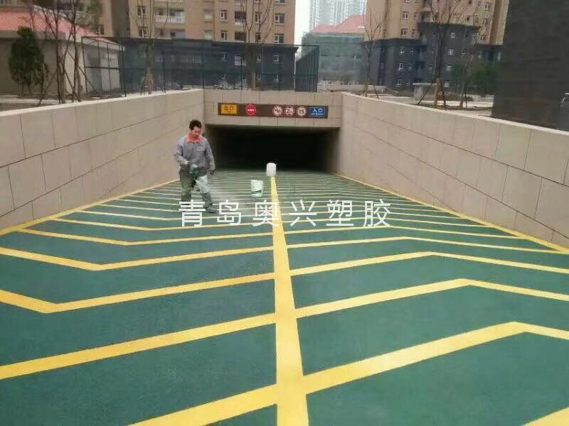 3、底涂施工、當(dāng)基面是水泥時(shí)用戶外道路專用粘接底料按配比攪拌均勻后用輥筒滾涂施工,在瀝青路面施工時(shí)不用涂刷底涂;